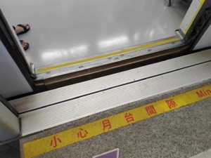 ある日MRTで移動していたら、ウィ~ンという電動音が聞こえてきました。昇降口のほうを見てみると、三輪車の形をした電動の車椅子が2台、軽快に列車の中に入ってきました。日本では、車椅子が列車に入るときには、駅員さんに前もって連絡をして、昇降台を持ってきてもらうという手間が必要です。でも、台湾のMRTはユニバーサル・デザインが徹底していますので、写真のように電車とホームの間隔が狭く、段差もほとんどありませんから、スムーズに自分で昇降できるのです。「すご~い」と感動してしまいました。