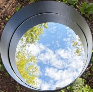 写真は、関西・大阪万博の静けさの森の中にある、オノヨーコさんの「Cloud Piece」です。日本語のタイトルは「平和と人権」。どうして日本人がつけるタイトルはこのように説教臭くなるのだろうと少し残念に思います。この作品は、1963年春に作られたもので「雲が滴り落ちることを想像する。その雲を入れる穴を自分の家の庭に掘る」というインストラクションがありました。