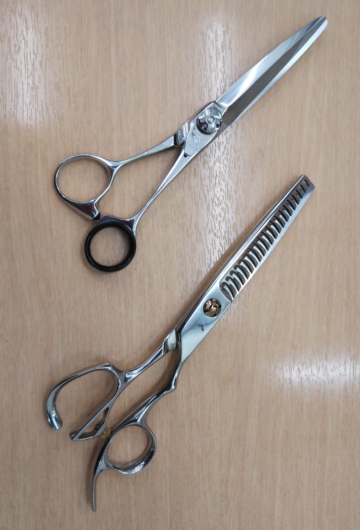 ヘアスタイルは基本的に美容室などに任せることが多いので、自ら創り出す美への関与としては、少し関心が低いと言われています。私もヘアスタイルは11歳の頃からカットしてもらっている美容師さんにすっかりお任せしています。今回の写真は、その美容師さんのシザーです(私のカット終わりたてホヤホヤの)。「え~っ、ブログに出るの~?」と嬉しそうにされていましたので、喜んでいただいていたら幸いです。